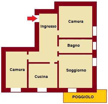 Ampio ingresso con grande armadio a muro, sala, cucina, bagno, due camere da letto (una matrimoniale, l'altra singola).
