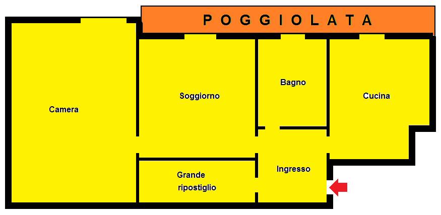 Ingresso, soggiorno, cucina, bagno recentemente rifatto, grandiosa camera da letto, grande ripostiglio.