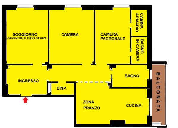 Ampio ingresso, disimpegno con ripostiglio, sala, cucina abitabile, doppi servizi con doccia idromassaggio, due camere da letto (di cui una con bagno en-suite e cabina armadio).