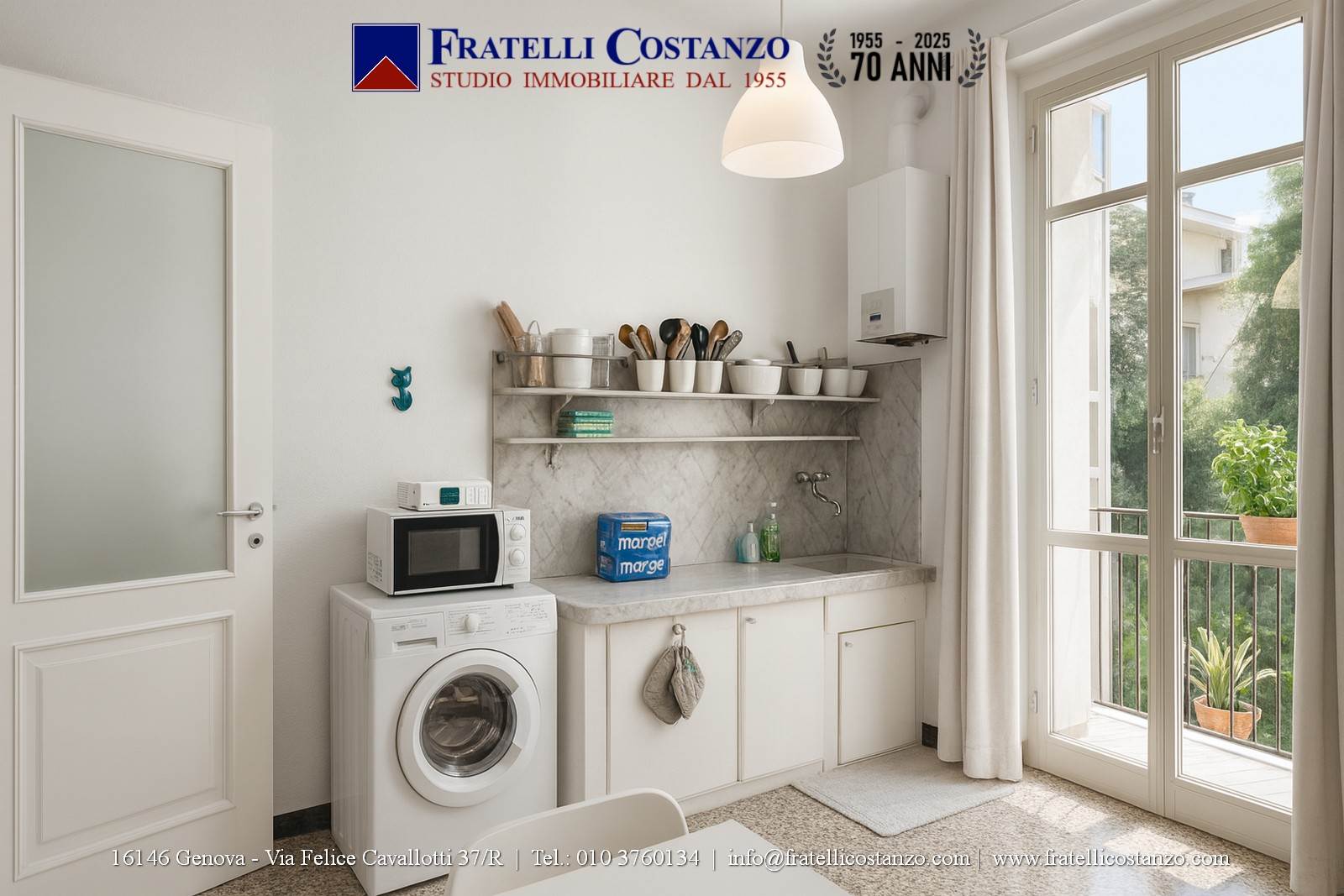 Ampio ingresso, cucina con poggiolo, soggiorno, bagno, pratico ripostiglio, una camera da letto.