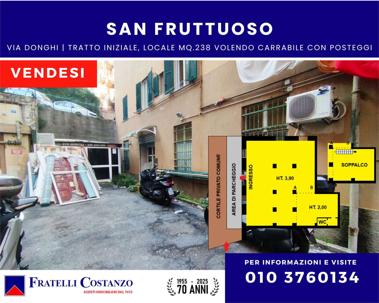 IN ESCLUSIVA – Nella parte bassa di Via Donghi, proponiamo LOCALE di MQ.238 totali posto al piano terra con ingresso indipendente e possibilità di renderlo in parte carrabile.